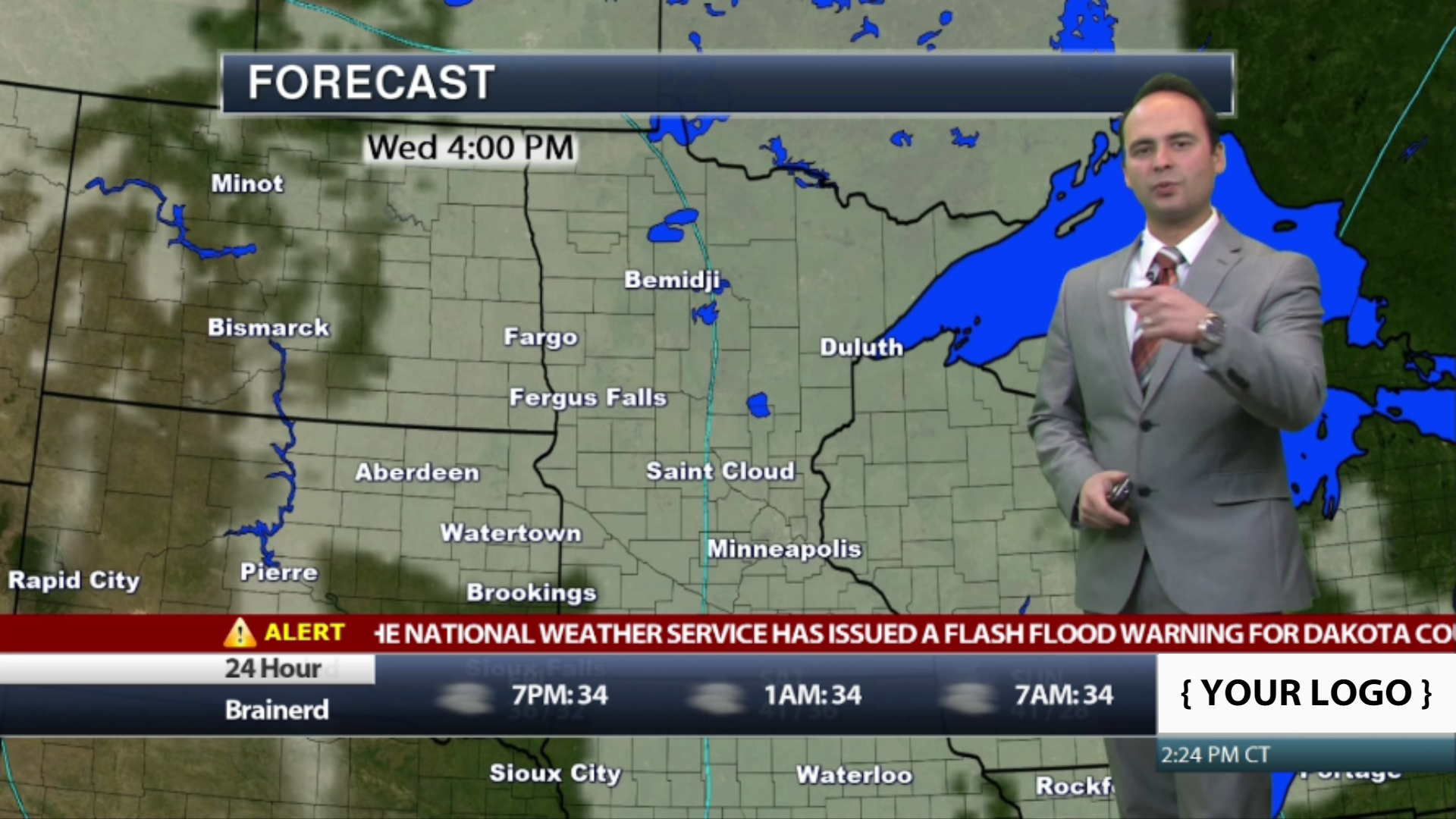 As a “white label” product your 24/7 automated weather channel is completely customizable! WeatherPlay includes a full suite of weather content to choose from–from radar loops and forecast maps to current conditions and extended forecast graphics. In addition, Praedictix works closely with our clients to create custom map views and the perfect line-up of relevant weather content.- Include a live severe weather ticker! This ticker scrolls through the latest National Weather Service watches and warnings and is also customizable for any location in the United States.